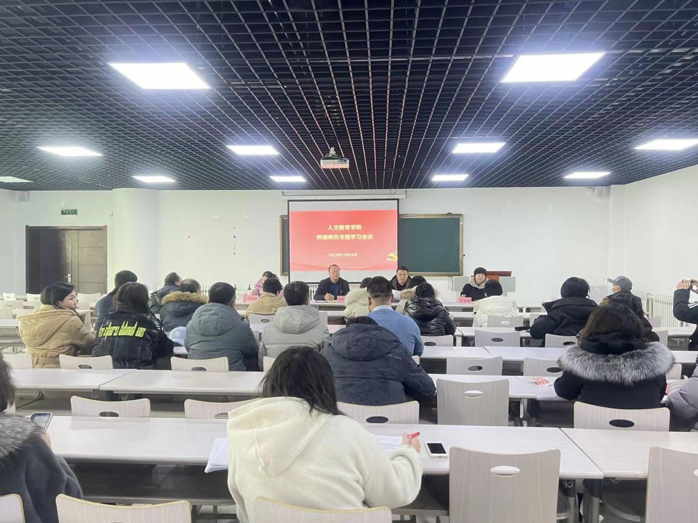 人文教育学院召开师德师风专题学习研讨会2023-12-27为深入贯彻落实《关于加强和改进新时代师德师风建设的意见》精神,进一步加强和改进学院师德师风建设,激励引导广大教师争做“四有”好老师,当好“四个引路人”,坚守“四个相统一”,12月26... -