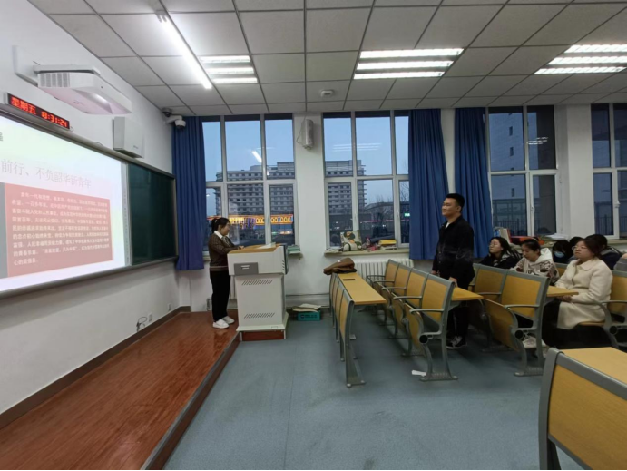 2022级应用心理学1班班主任安达作了班级工作报告,回顾了过去一学期的班级工作情况,组织学生观看了共青团发布的“青春践行二十大”视频,并就这一主题展开讨论。随后,解读了学校评奖评优相关文件,解答了学生有关补考、重修等问题。学院党总支书记孙利军希望同学们及早做好学习规划,明确目标,不懈努力。