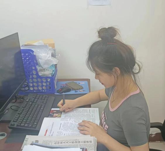 工作方面,作为班级的学习委员,刘苗苗负责与同学们学业有关的各项事务,包括四六级考试报名、学生绩点统计、收发作业、教务报告等工作。当同学们在学习上存在困惑时,她总能及时与老师交流,反馈问题,承担起了课任教师与学生之间沟通的桥梁,在学业上为同学们排忧解难。此外,刘苗苗主动发挥带头作用,鼓励同学们认真学习,营造良好的班级学习氛围。