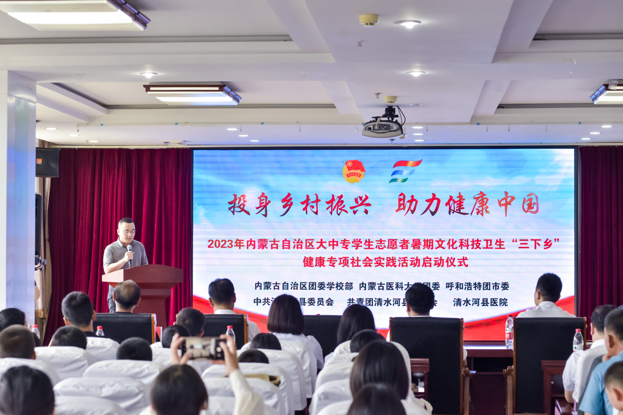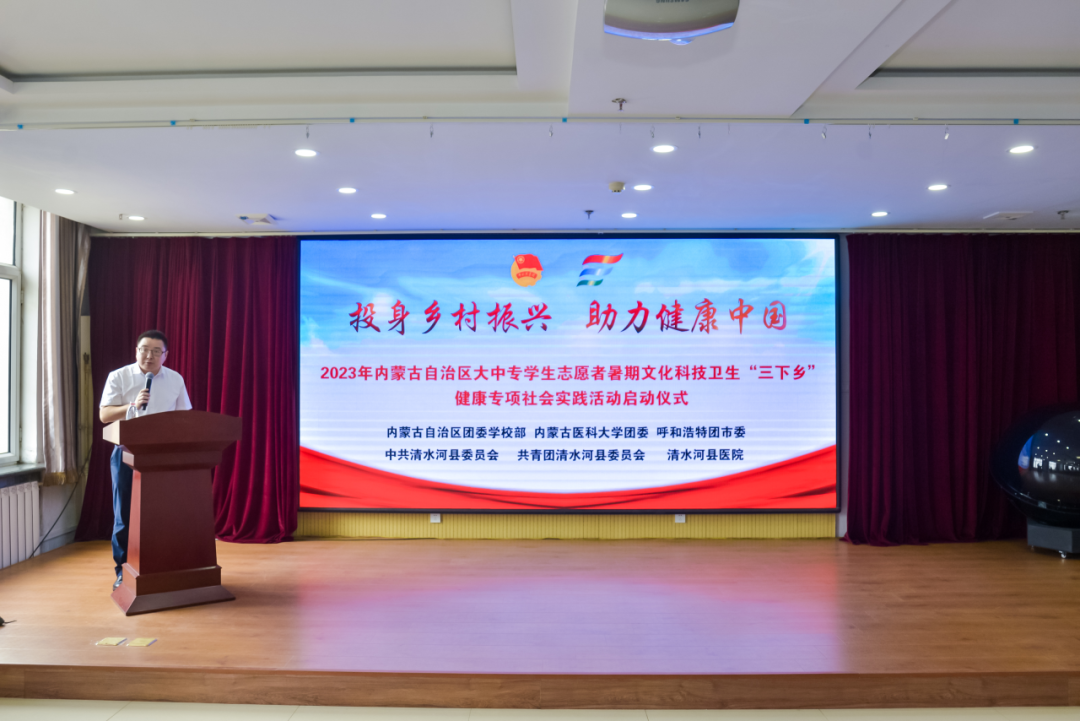 7月13日上午,内蒙古自治区大中专学生志愿者暑期文化科技卫生“三下乡”健康专项社会实践活动启动仪式在清水河县医院举行。清水河县人民政府党组成员、副县长张如刚,自治区团委学校部部长任智渊,内蒙古医科大学团委书记张强发表讲话。人文教育学院党总支书记孙利军,副书记、副院长石海英出席了启动仪式并为当地学生发放了助学物资。