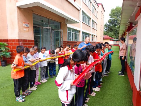 为加强对乡村小学学生的关爱保护工作,帮助乡村儿童创造健康的心理成长环境,7月13日下午,人文教育学院暑期“三下乡”志愿服务团队师生组织宏河镇中心小学学生开展了主题鲜明、内容丰富的心理素质拓展活动,通过一个个颇具挑战的趣味游戏激发学生的内在潜能,提高孩子们团队配合、合作共赢的意识和能力。