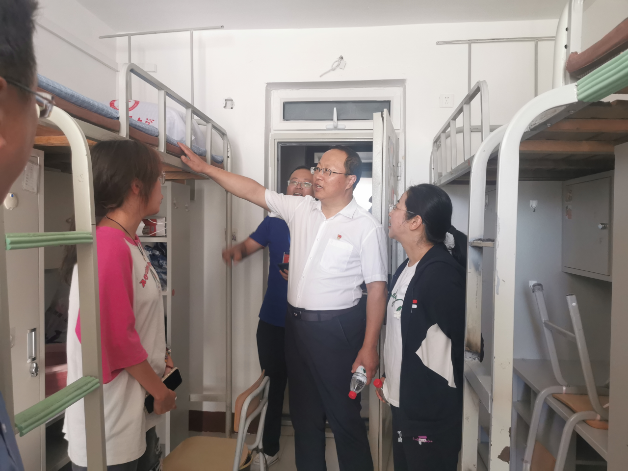 8月31日,学院党总支书记孙利军,院长温国政,副书记、副院长石海英,学工办副主任陈亮,2023级社会工作1班班主任安达及2023级应用心理学1班班主任常淼婷一同走访了学院新生报到接待处和学生宿舍,实地了解新生的报到情况。