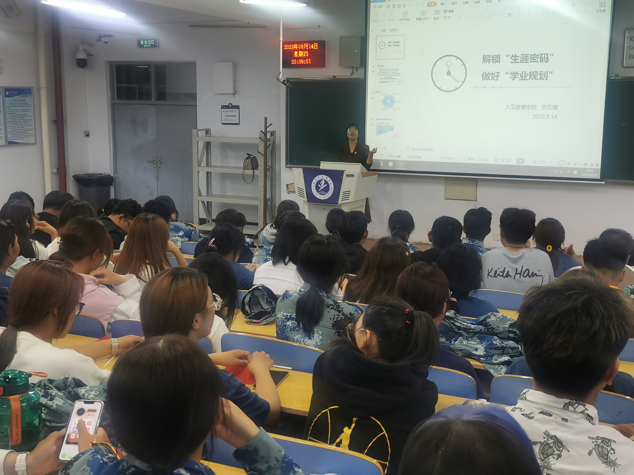 9月14日,人文教育学院就业创业教研室齐文娟老师在金山校区教学北楼202教室作了题为“解锁‘生涯密码’做好‘学业规划’”的入学教育讲座,2023级全体新生聆听了讲座。