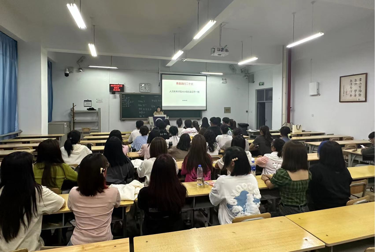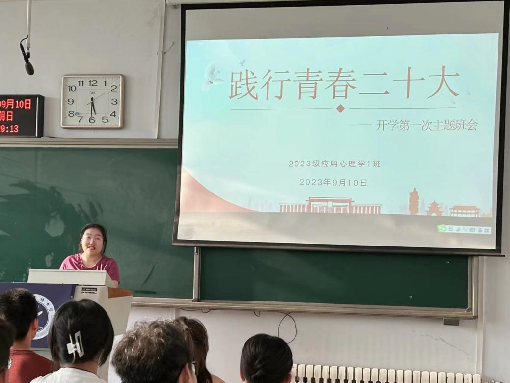 新学期,为做好大一新生的思政教育工作,加强学生的日常管理,9月10日,人文教育学院2023级应用心理学一班与2023级社会工作一班分别于教学北楼105、106教室开展了“践行青春二十大”——开学第一次主题班会。