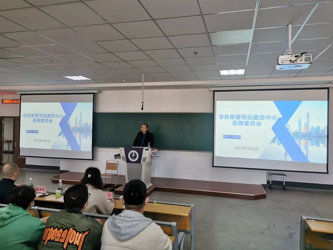 随后,吉林常春司法鉴定中心祝潇滨主任详细介绍了吉林常春司法鉴定中心的基本情况、主要业务范围以及员工相关待遇等,向同学们发出了“常春▪与您相逢”的热情邀请。同学们兴趣浓厚,积极咨询了司法鉴定的未来前景、招聘人才所需学历及专业要求、中心如何对待考研、相关待遇的落实、长春地区房价等具体问题。祝主任逐一耐心解答。现场氛围融洽。