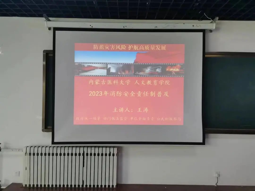 为提高教职工对消防安全工作的重视程度,预防和减少火灾事故的发生,按照我校安全管理部工作安排,5月11日,人文教育学院特邀呼和浩特市安全健康教育中心王涛教官于金山校区文体馆4楼多媒体教室开展“防范灾害风险,护航高质量发展——2023年消防安全责任制普及”专题培训。
