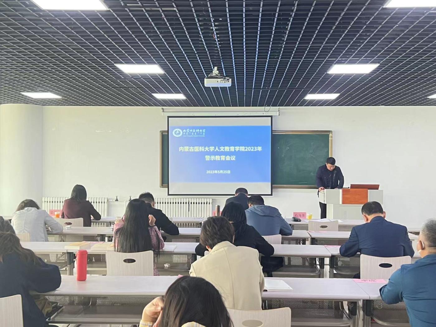 5月25日上午,人文教育学院在文体馆四楼多媒体会议室召开2023年警示教育会议。学校纪委副书记(监察专员办公室主任)于国辉、纪检监察科科员温晓敏列会指导。学院领导班子成员、全体党员参加了会议。会议由党总支副书记石海英主持。