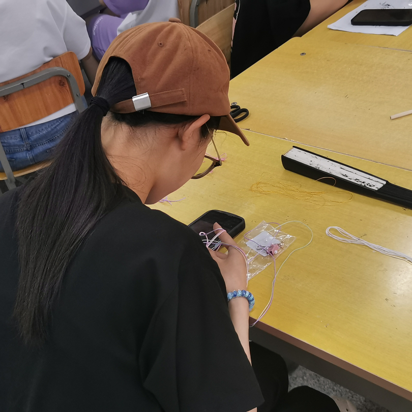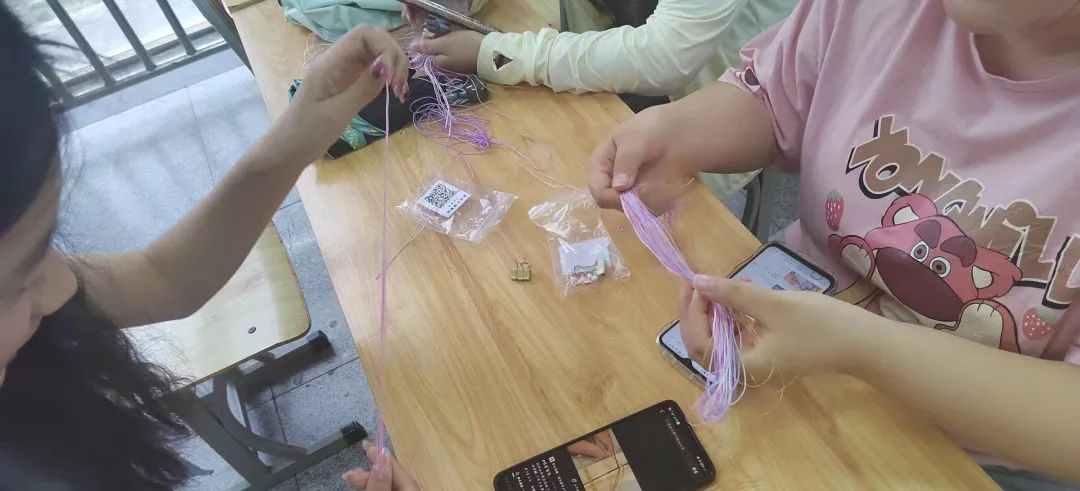 中国古代崇敬五色,以五色为吉祥色。端午节佩戴五彩绳有祈福纳福、保佑健康平安的美好寓意。同学们跟着视频认真学习五彩绳的制作方法,在一针一线中品味中国传统文化魅力,增加了对传统文化的认同感与自豪感。
