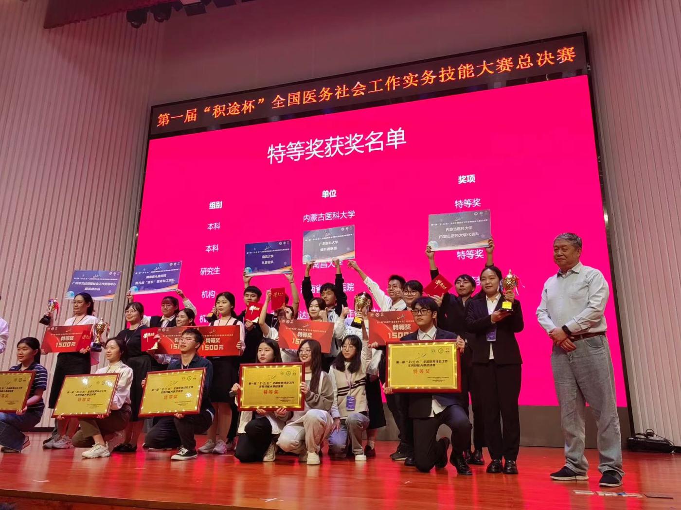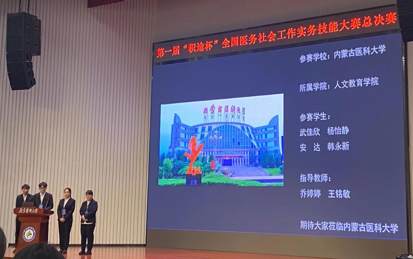 2023年10月21-22日,第一届“积途杯”全国医务社会工作实务技能大赛总决赛圆满落幕。由人文教育学院指导教师乔婷婷、王铭敏,参赛选手武佳欣、杨怡静、安达和韩永新组成的内蒙古医科大学医务社会工作代表队在本次大赛总决赛中获得特等奖。