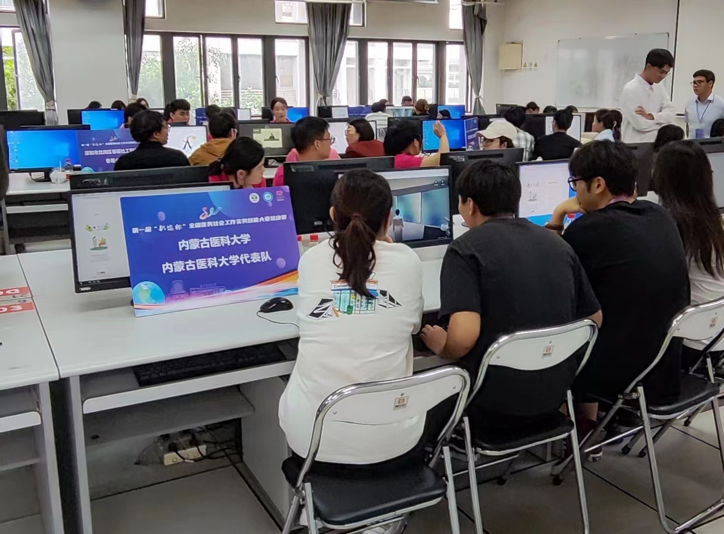 总决赛包括书面案例提交、陆由3D医务社工虚拟仿真竞争对抗比赛、路演答辩赛三个环节。内蒙古医科大学代表队由社会工作专业教师王铭敏带队前往广东医科大学东莞校区进行现场角逐。经过激烈紧张的书面案例评审、线上仿真系统比拼,内蒙古医科大学和其他14支队伍进入了决赛路演环节。10月22日上午,内蒙古医科大学代表队以图文并茂的形式展呈现了有内蒙古区域特色的医务社会工作实务案例,并接受7位专家评委的提问及点评,最终内蒙古医科大学以本科组第一的成绩一举斩获特等奖。