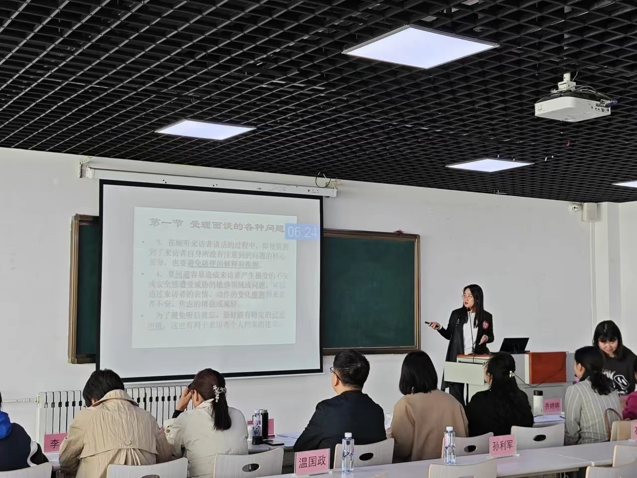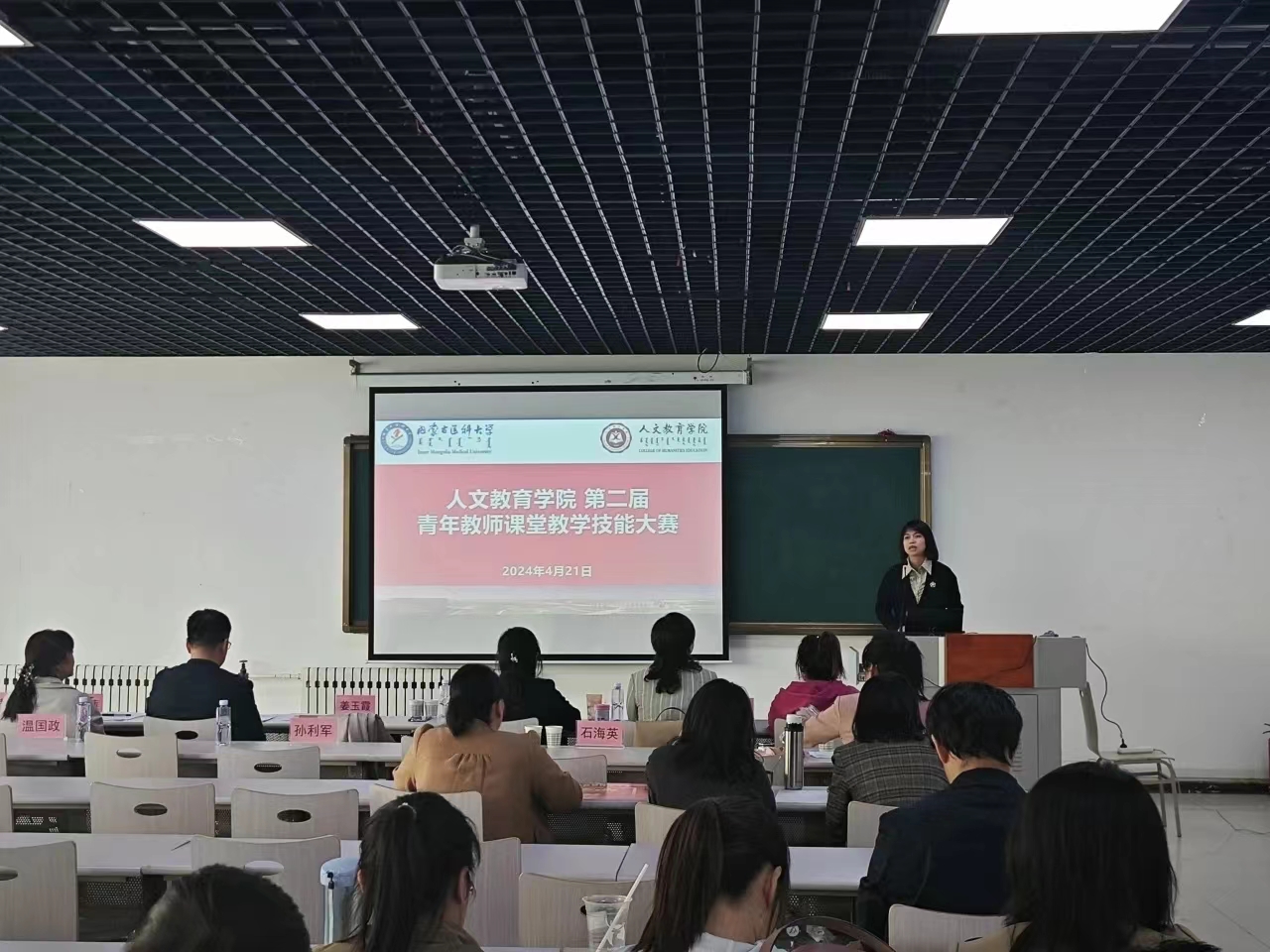 为深入学习贯彻习近平新时代中国特色社会主义思想和党的二十大精神,落实全国教育大会精神,以教育家精神为引领,进一步加强学院青年教师队伍建设,推动教师积极参与学院课程思政“大磨课”系列活动,助力学院教育教学高质量发展,提高我院教师的专业技术水平,展示教师才能,促进教师相互交流,相互学习,共同提高。2024年4月21日,我院举办了人文教育学院第二届青年教师课堂教学技能大赛,特邀请评委9人,其中专家评委6人,学生评委3人。