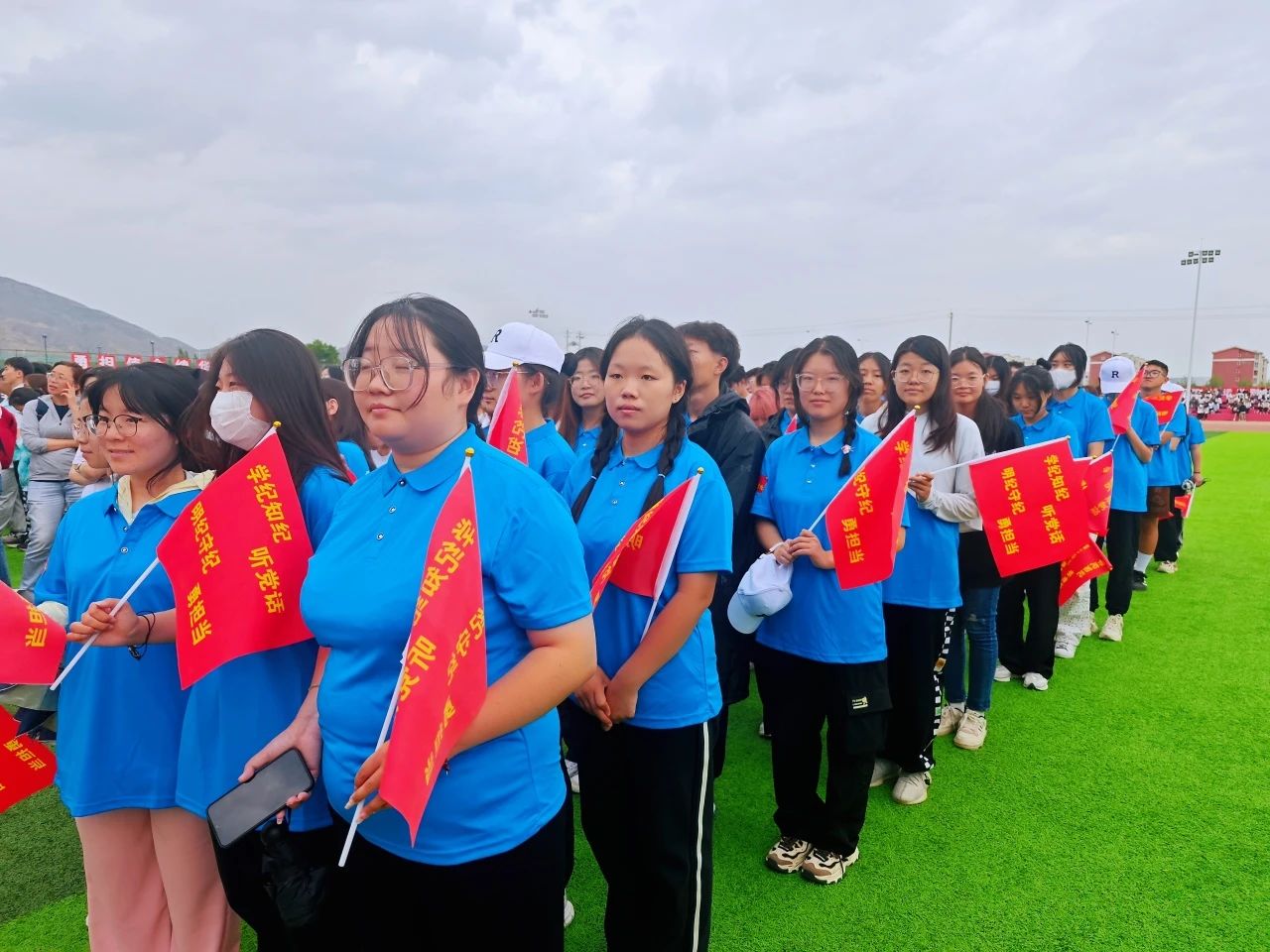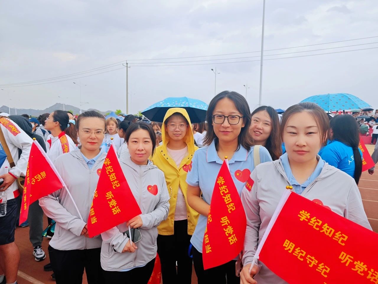 学纪知纪听党话,明纪守纪勇担当。两天来,我院教职工精神抖擞,在看台秩序井然,为运动员们的精彩展示助威加油。一声声“加油”伴随着挥舞的旗帜,为运动员们注入了相信自我、不断拼搏的不竭动力,也成为了观礼台上一道别样的风景。